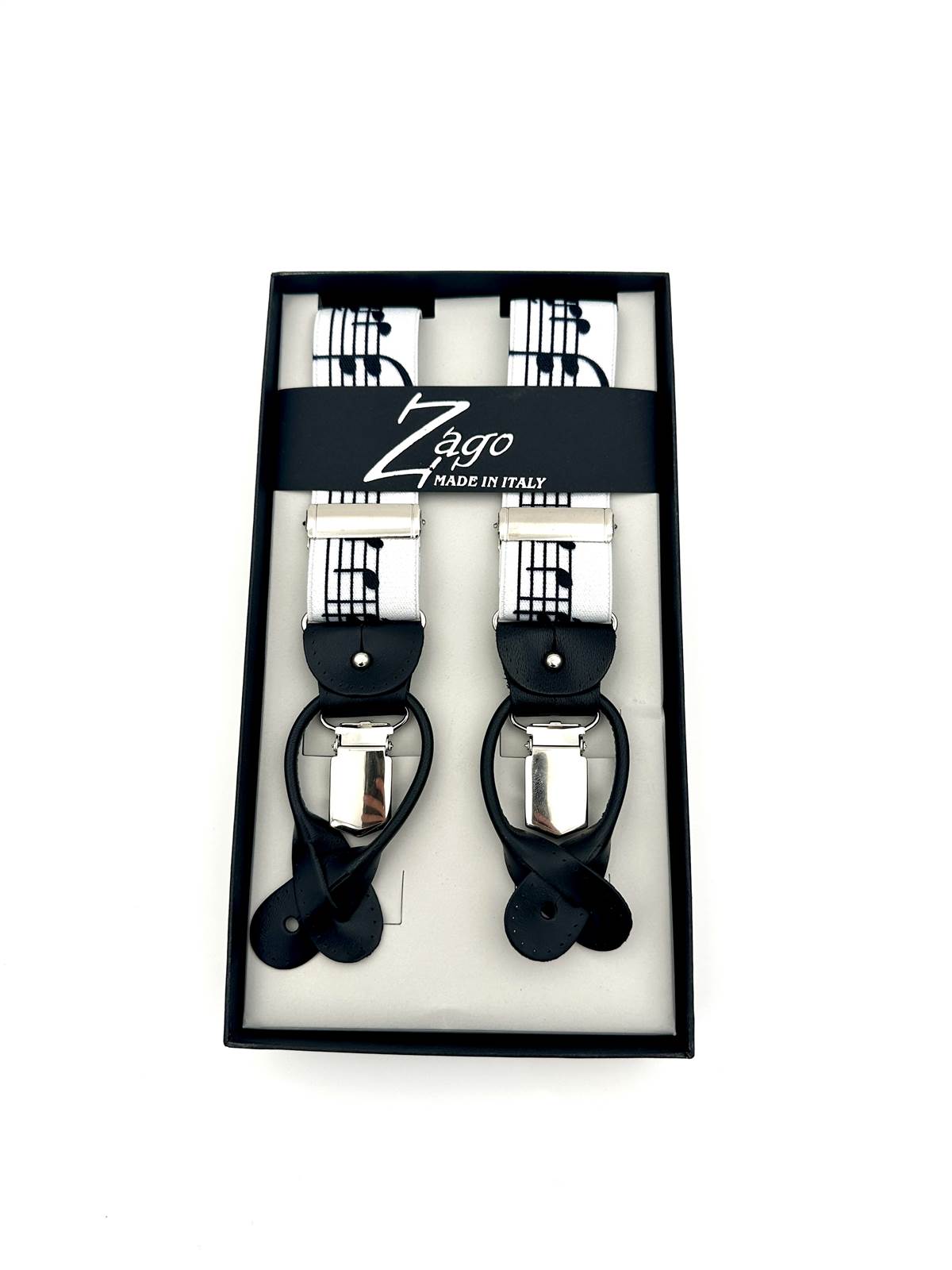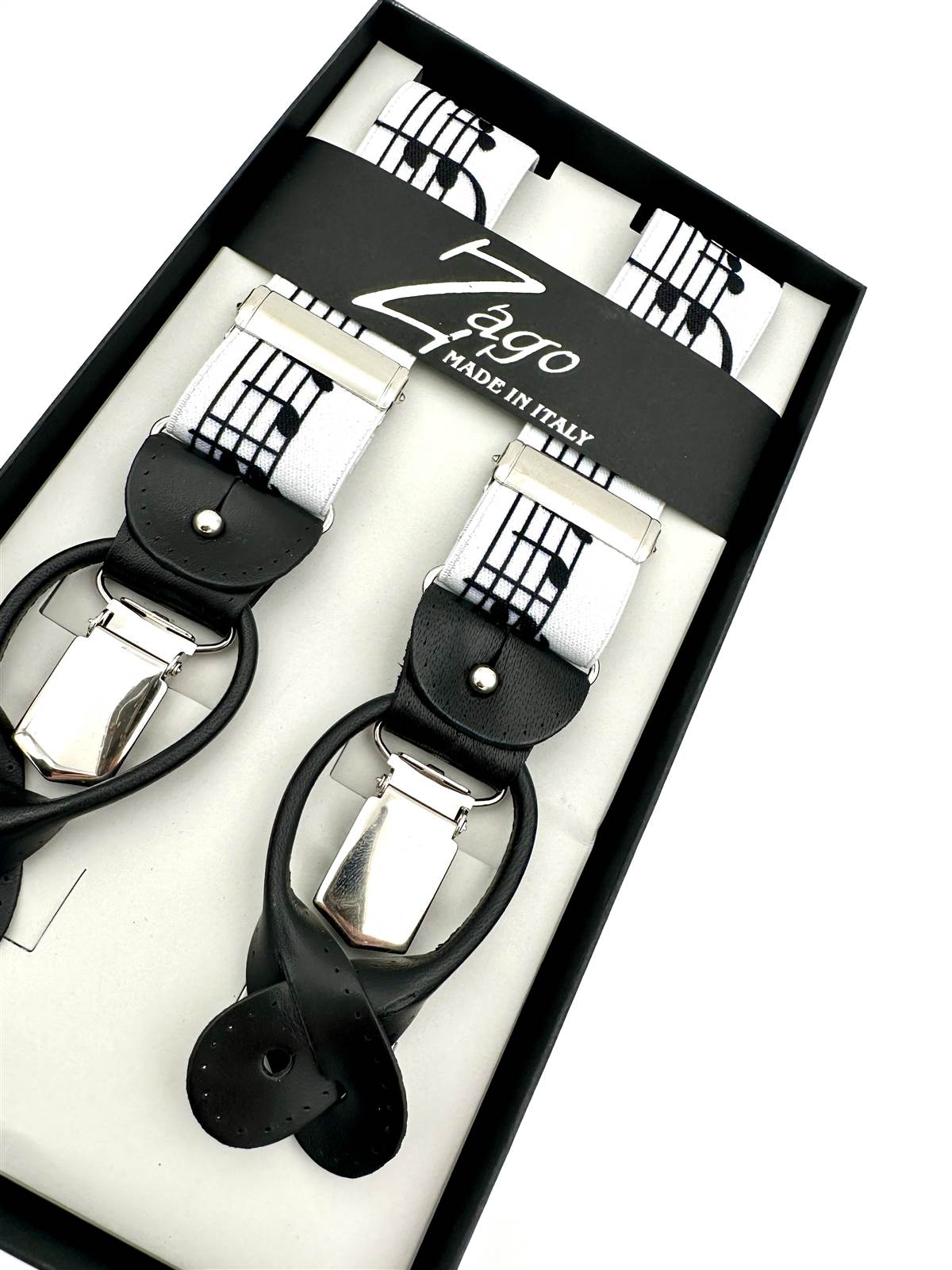 Bretella in elastico fantasia musica con pelle