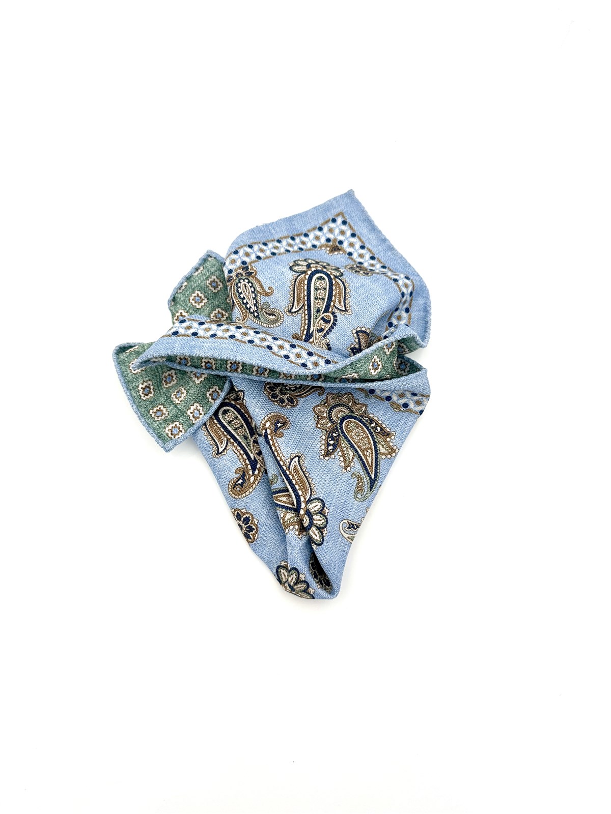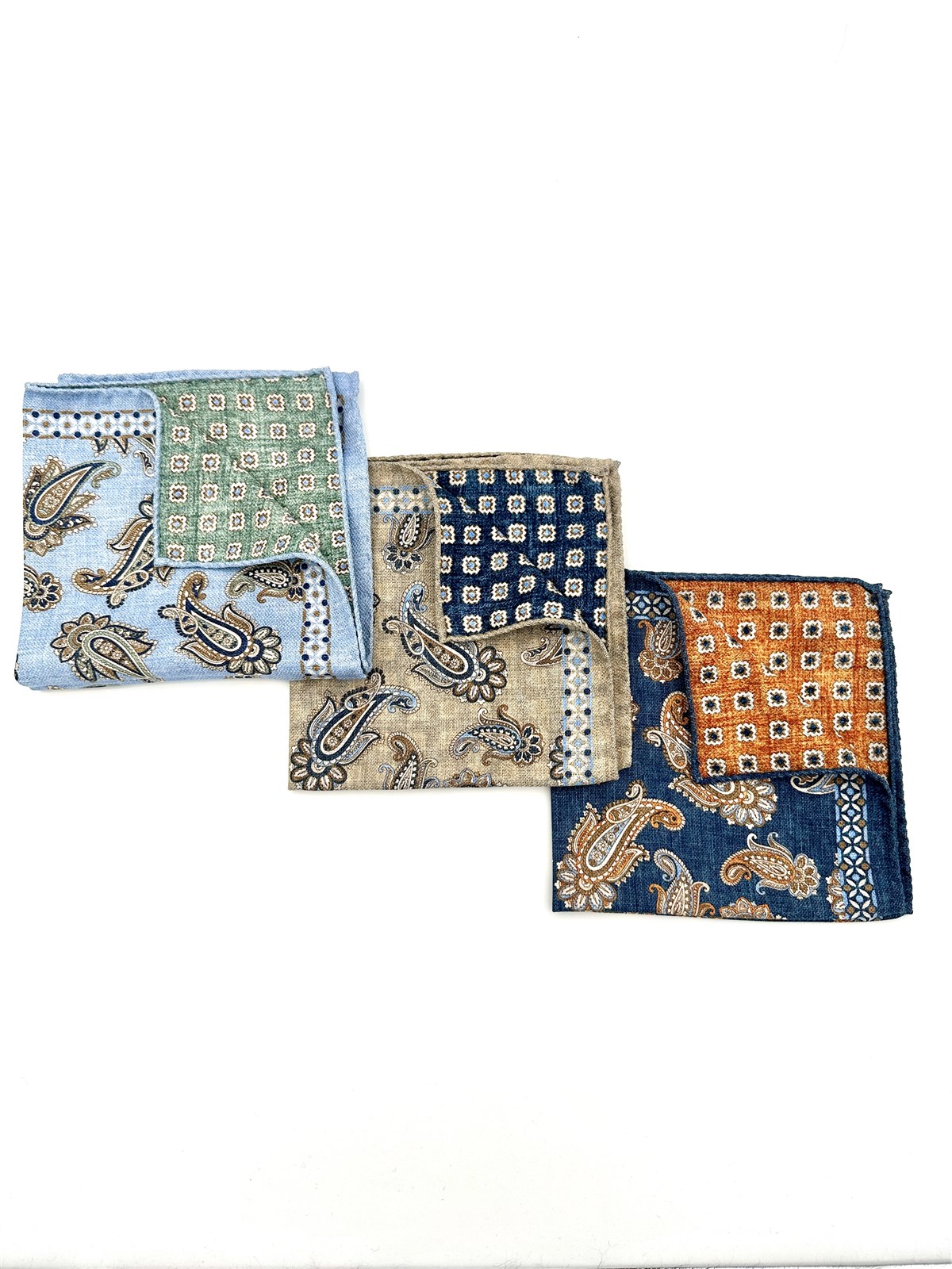Fazzoletto da taschino per dare quel tocco di originalità e unicità al tuo completo o giacca. Essendo double-face va indossato in modo che escano entrambe le fantasie.