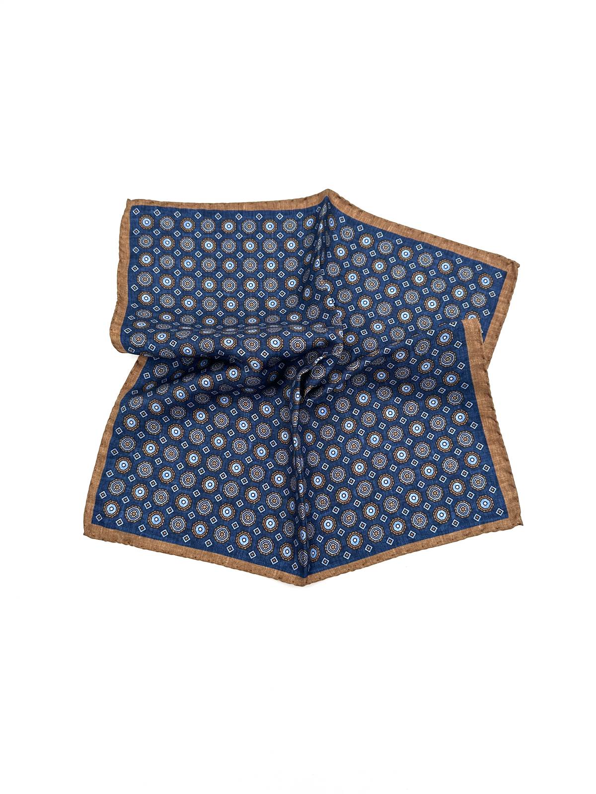 Pochette in seta disegno cravatteria blu-beige